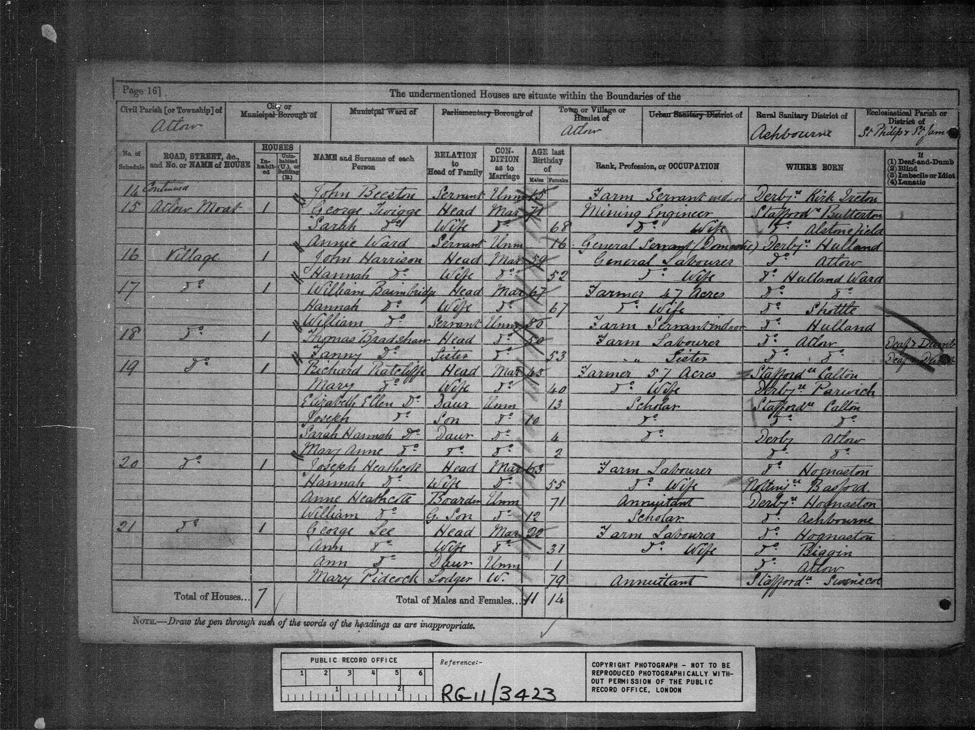1881 | Atlow, Derbyshire Dales, Derbyshire, England |