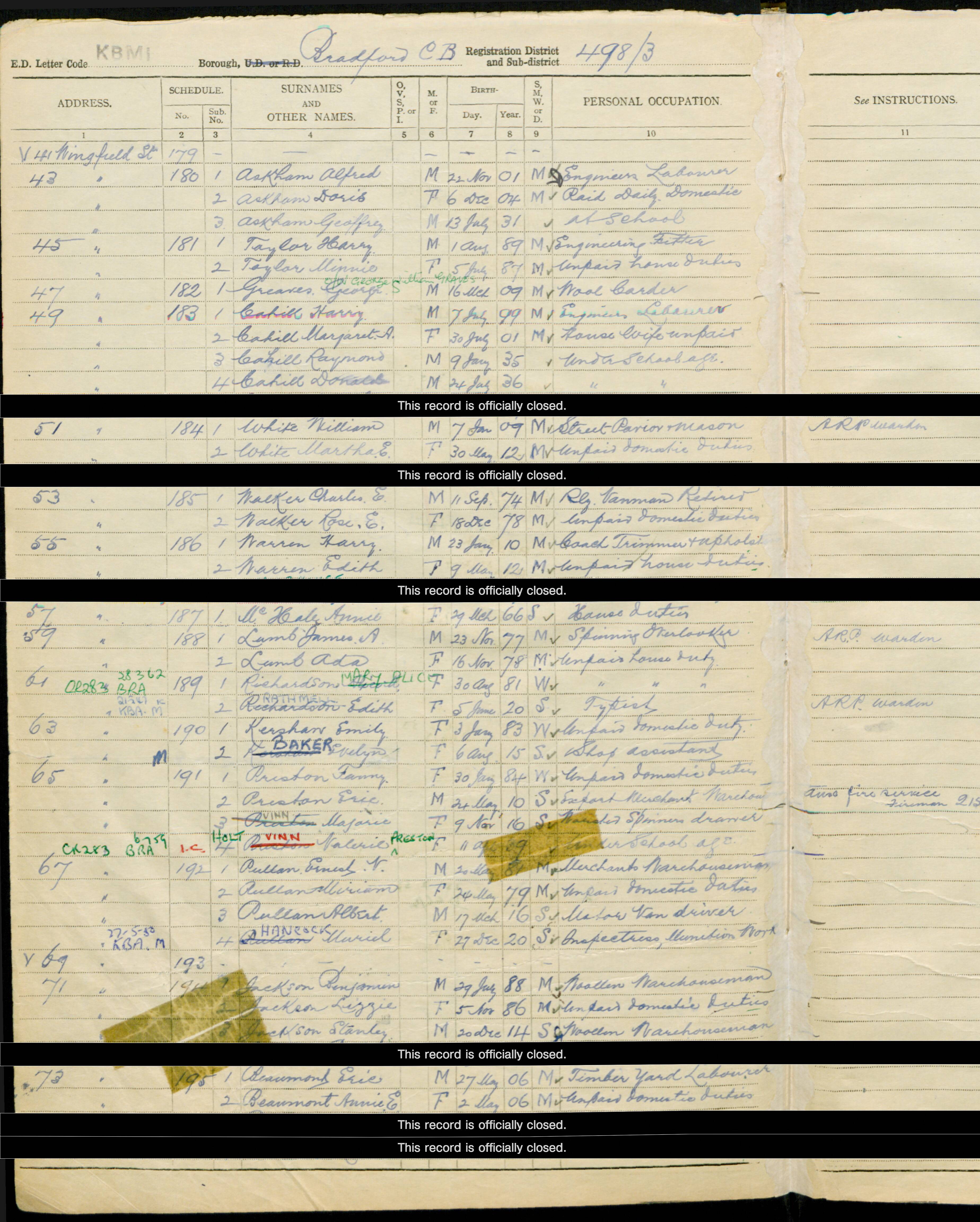 1939 | 61 Wingfield Street, Bradford, West Yorkshire, Yorkshire, England |