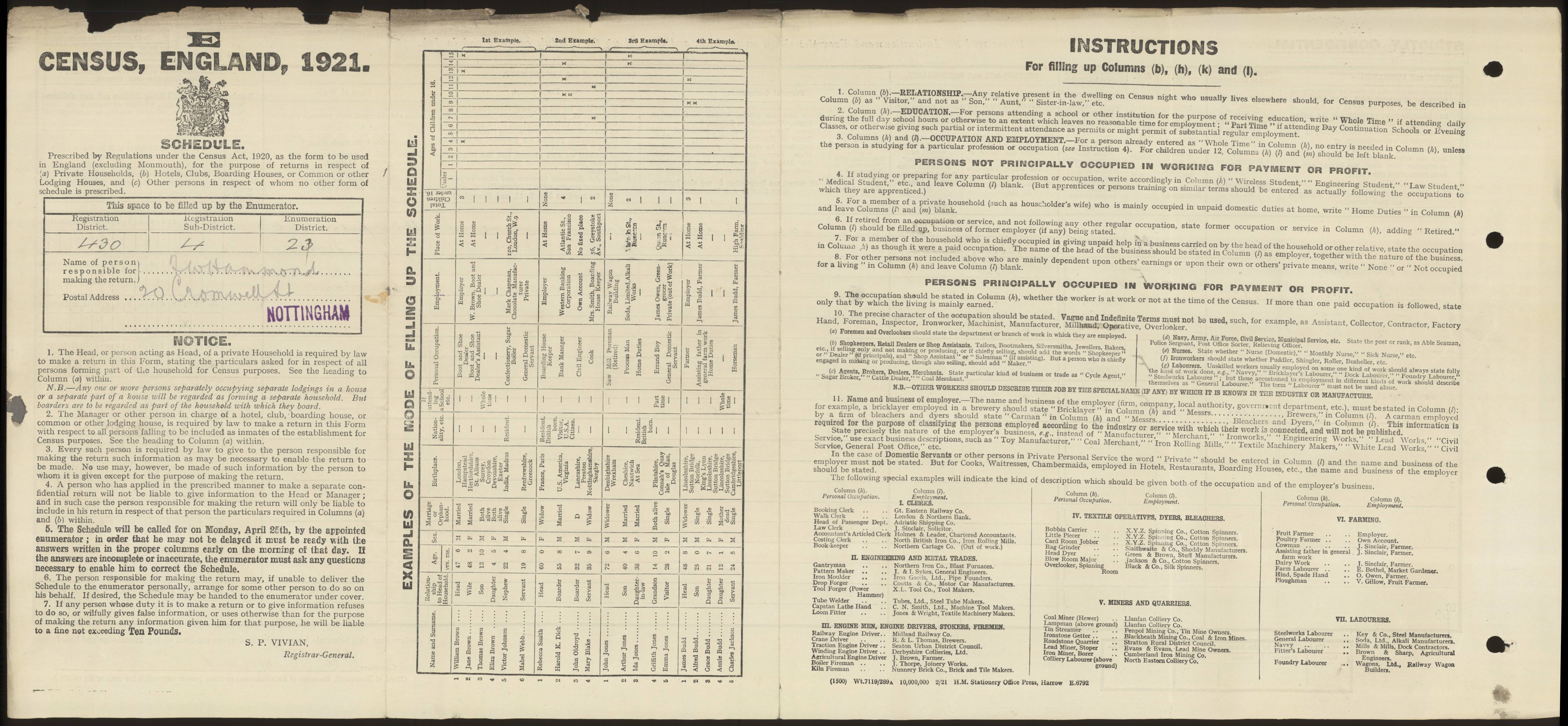 1921 | 20 Cromwell Street, Nottingham, Nottinghamshire, England |