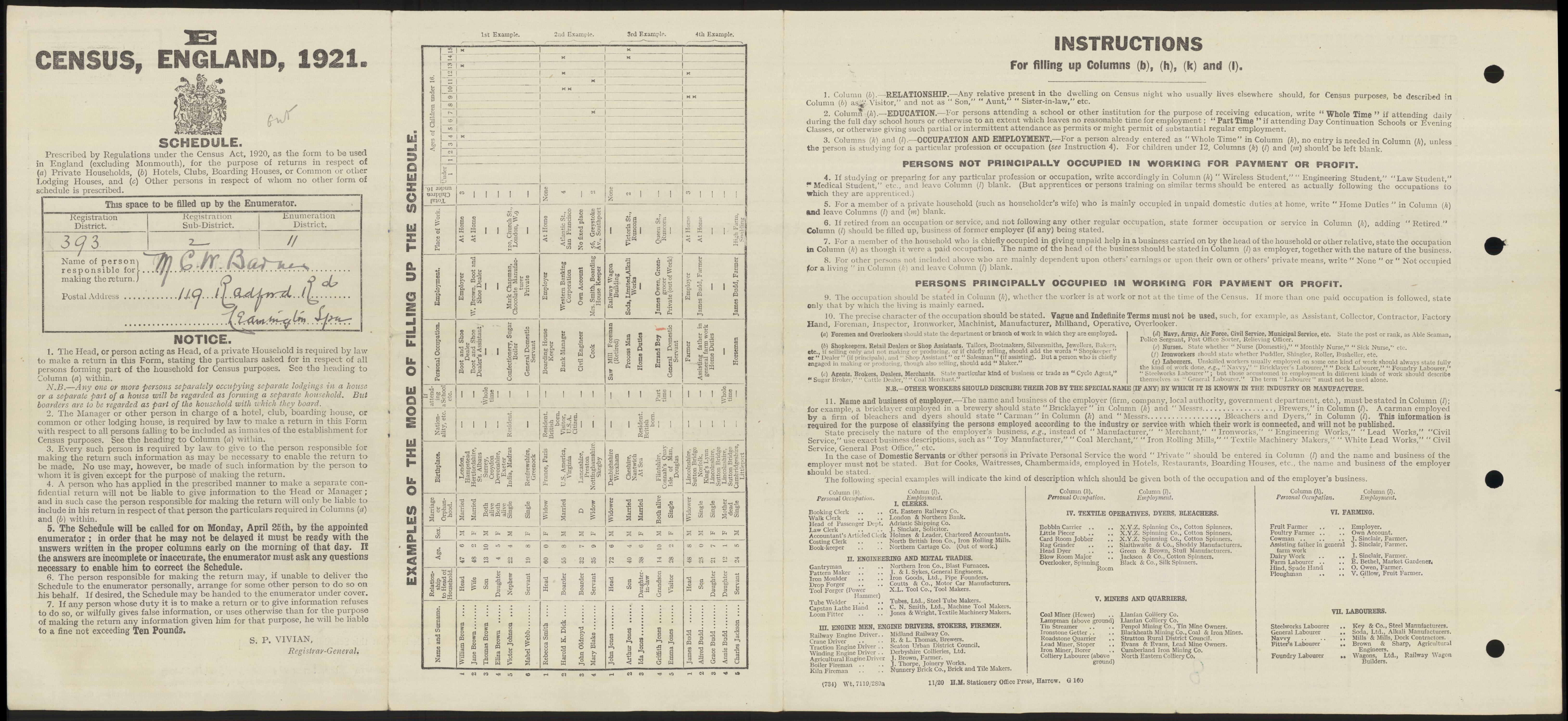- UK 1921 Census 2nd page: click to display Page Two