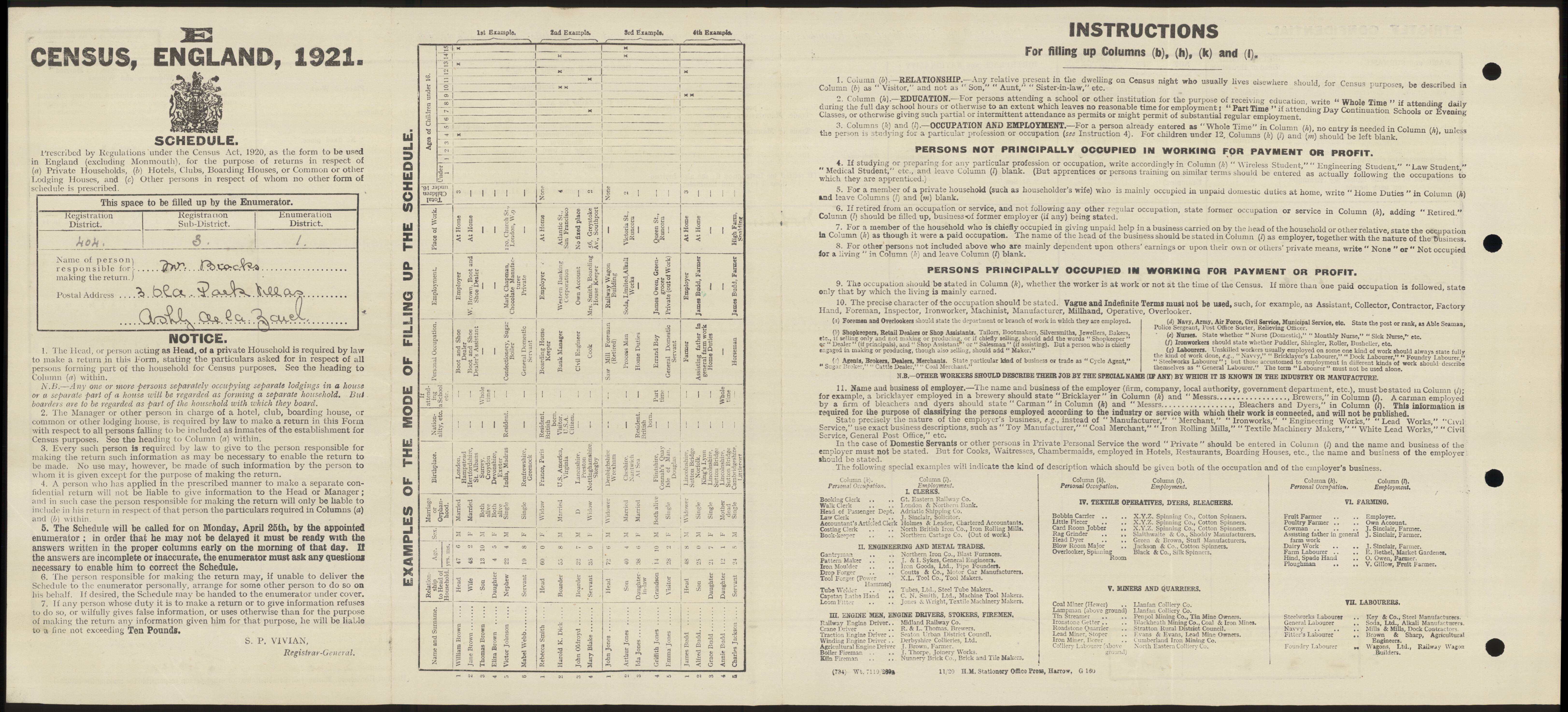 - UK 1921 Census 2nd page: click to display Page Two