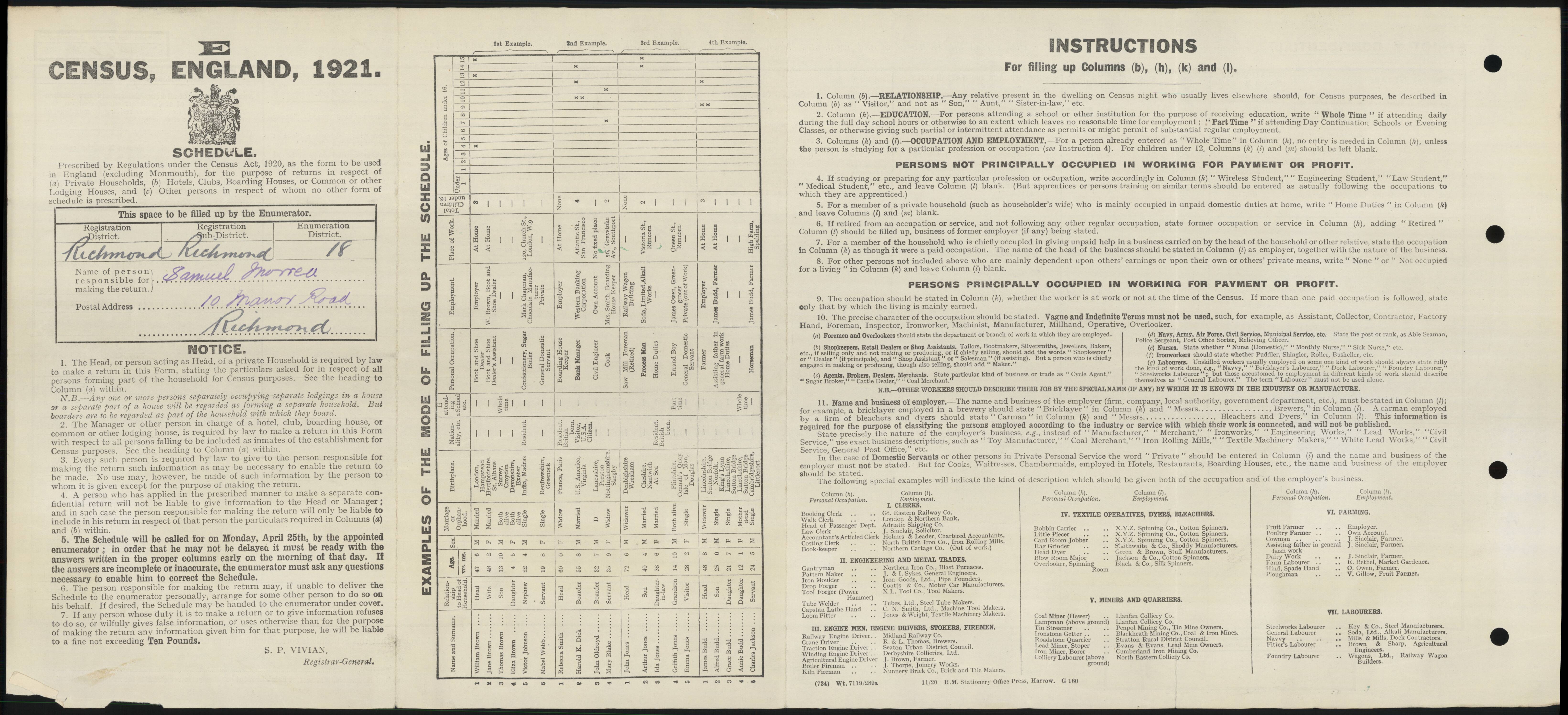 - UK 1921 Census 2nd page: click to display Page Two