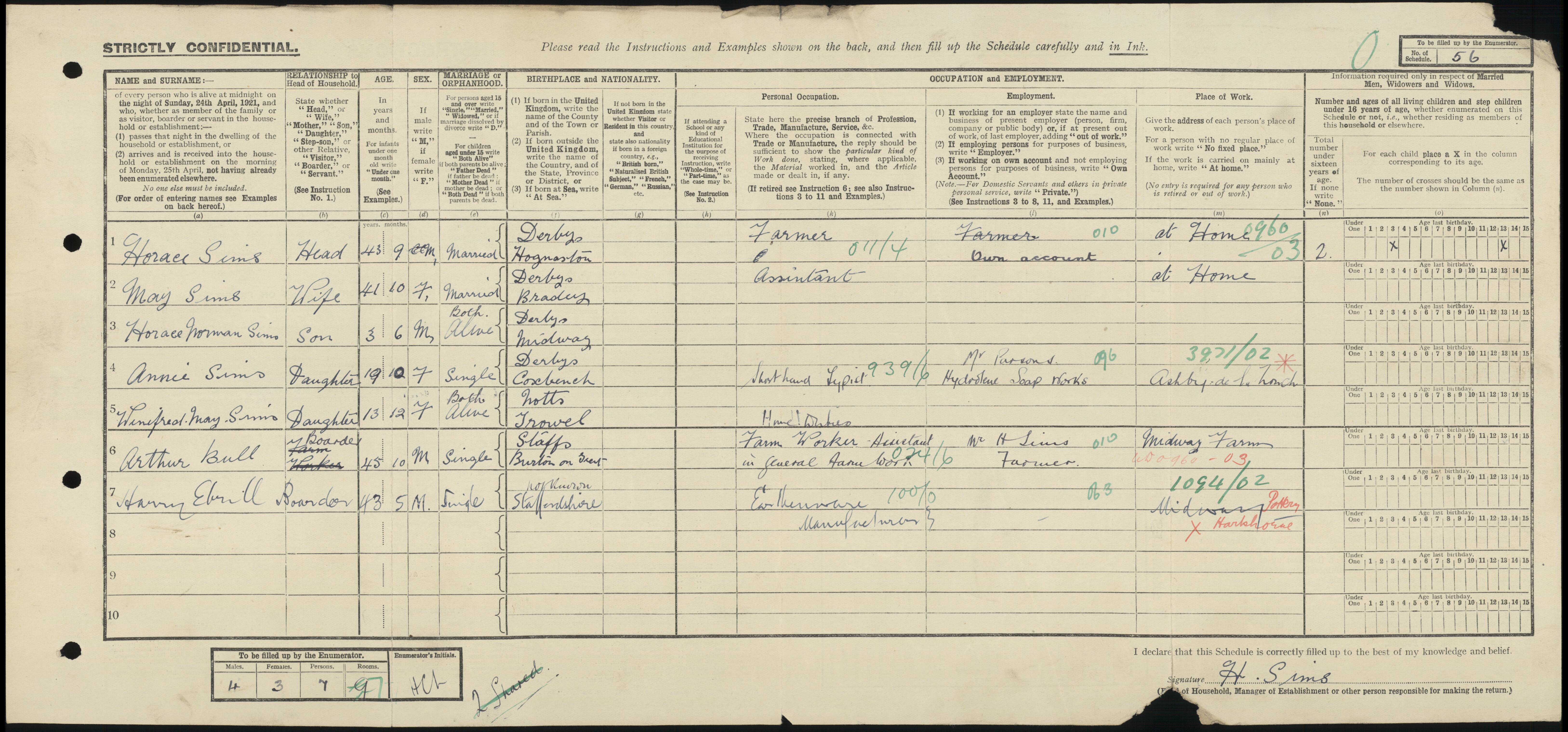 | Father | Horace SIMS, b. 22 Sep 1877, Sturston, Derbyshire Dales, Derbyshire, England d. Nov 1957, Repton, Derby, Derbyshire, England (Age 80 years) | |