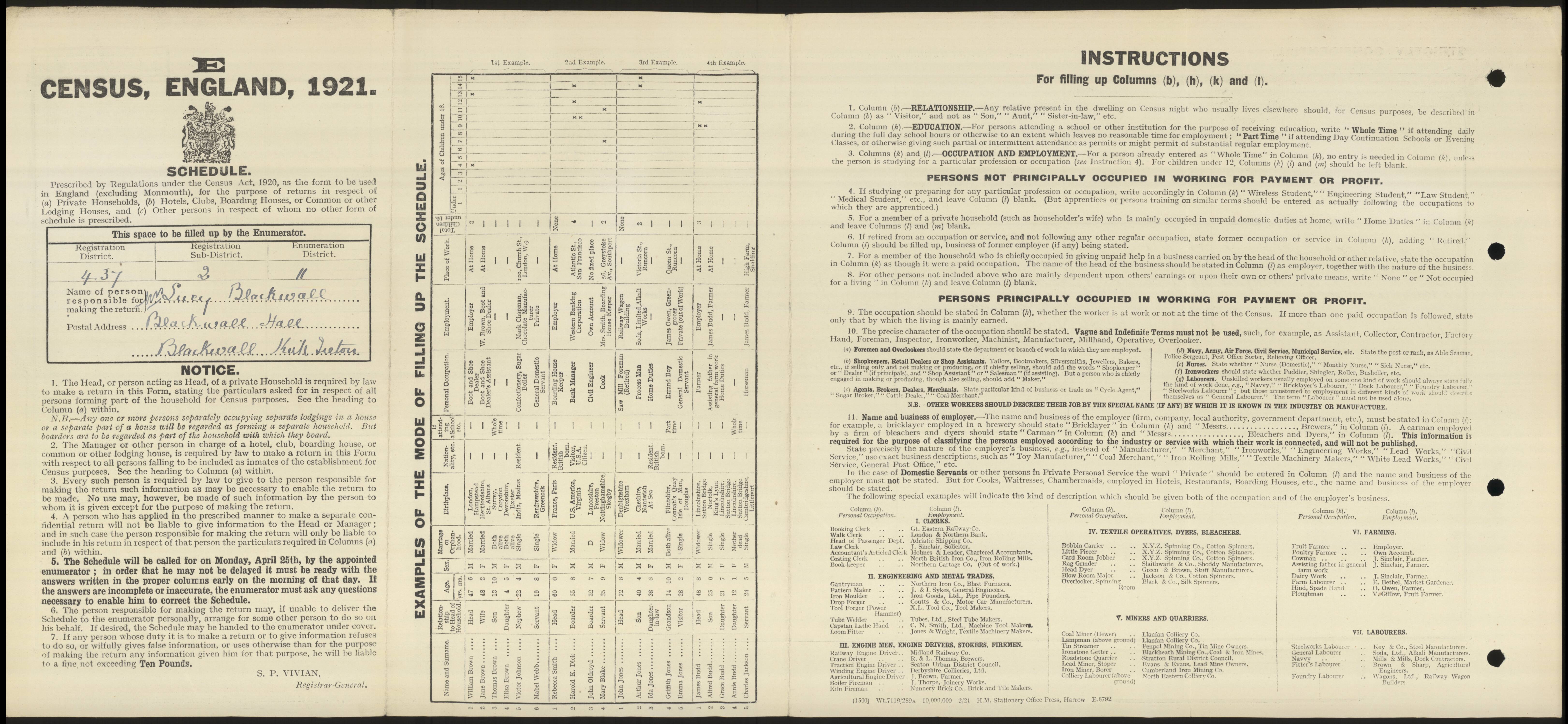 - UK 1921 Census 2nd page: click to display Page Two